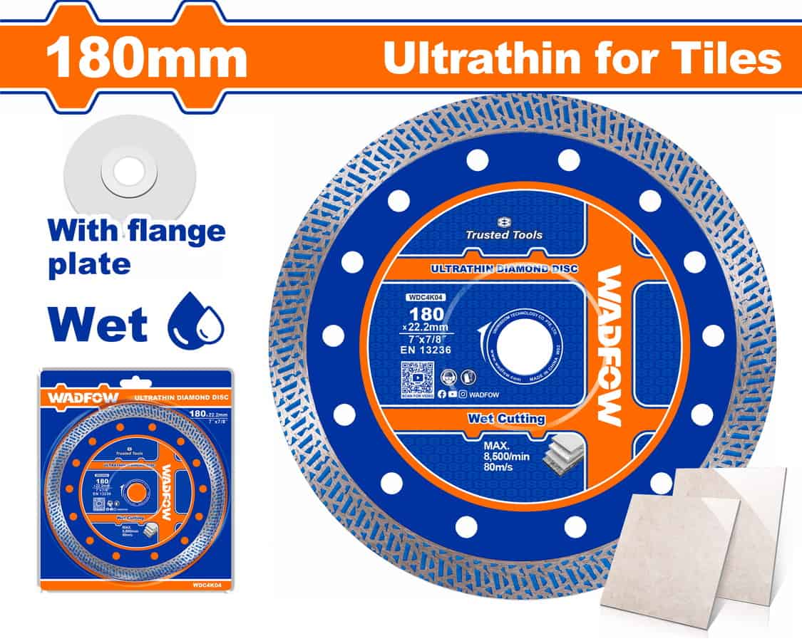 WADFOW WDC4K04 Διαμαντόδισκος Υγράς Κοπής Λεπτός 180 Χ 1.4mm