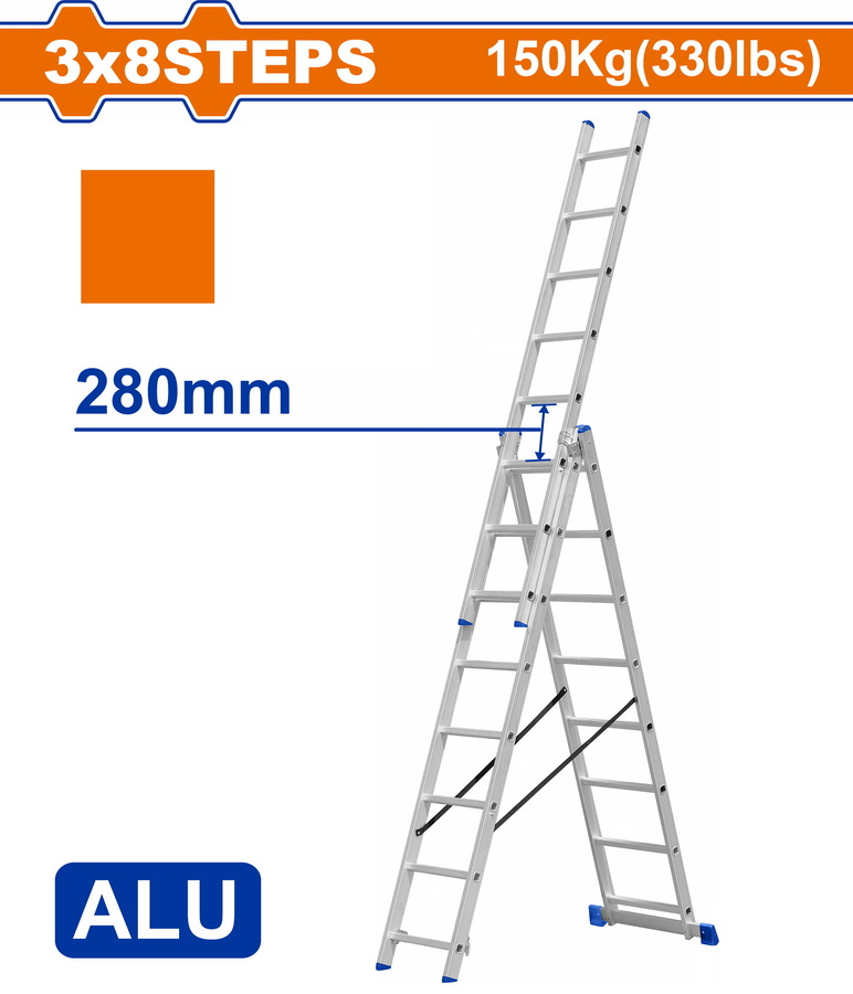 Wadfow WLD6H38 Σκάλα Αλουμινίου 3X8 Σκαλοπάτια