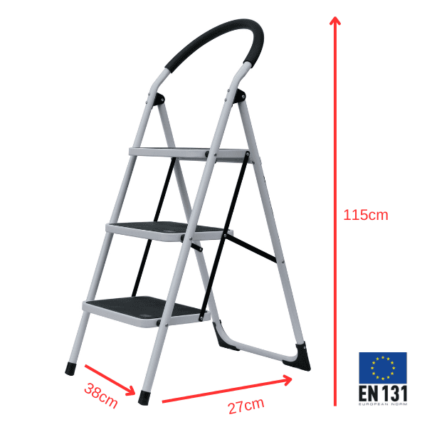 Η μεταλλική σκάλα 3 σκαλοπατιών Βαρέως Τύπου είναι η τέλεια επιλογή για όσους αναζητούν ένα αξιόπιστο και πρακτικό εργαλείο για την καθημερινότητά τους. Με την εξαιρετική της κατασκευή και το ελαφρύ της βάρος, η σκάλα αυτή συνδυάζει άνεση και ασφάλεια σε κάθε χρήση.