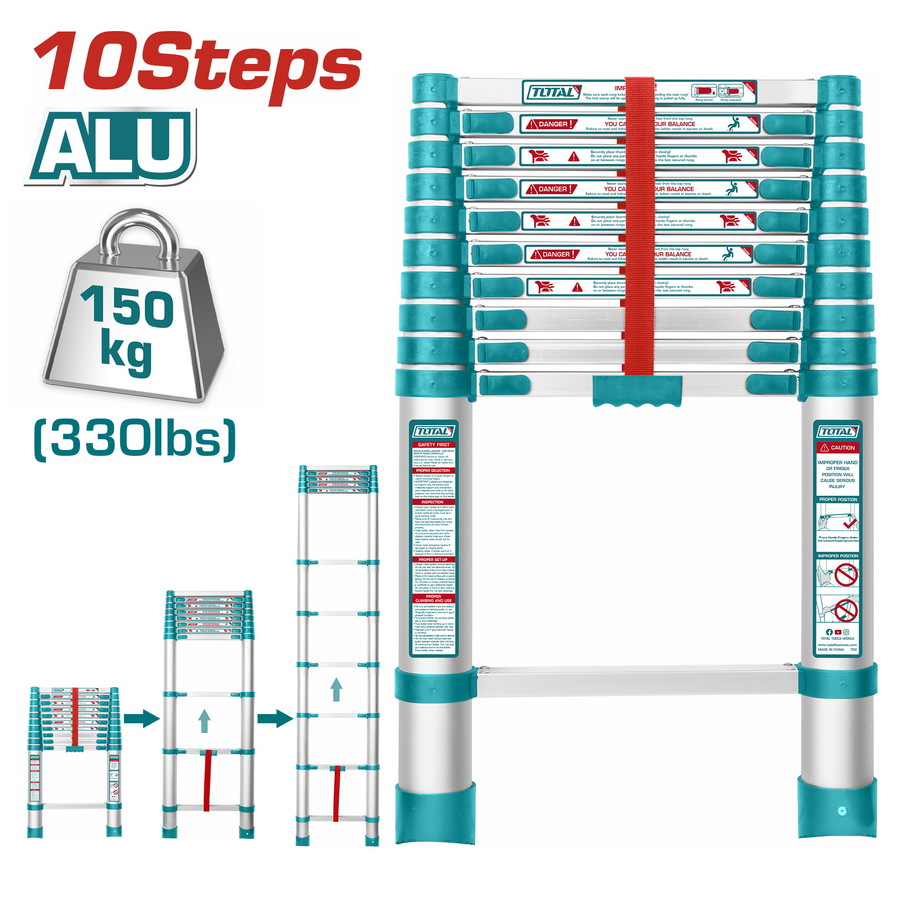 Total THLAD08101 Τηλεσκοπική Σκάλα Αλουμινίου Μονή 10 Σκαλιών