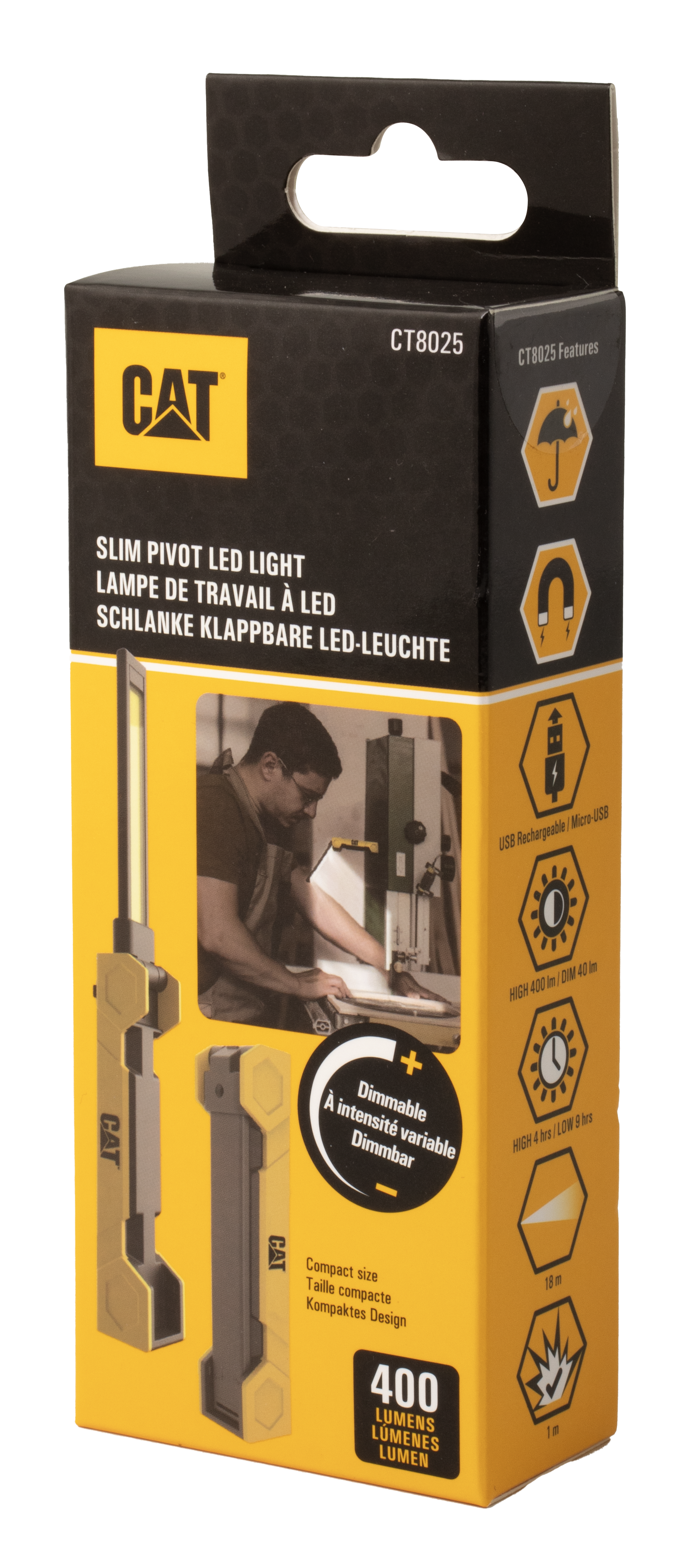 Ο επαναφορτιζόμενος φακός LED CAT CT8025 προσφέρει μέγιστη φωτεινότητα 400 lumens. Με ρυθμιζόμενο φωτισμό, μπορείτε να επιλέξετε την επιθυμητή φωτεινότητα, με χρόνο λειτουργίας έως 4 ώρες στην υψηλή λειτουργία και έως 9 ώρες στη χαμηλή λειτουργία. Η μέγιστη απόσταση δέσμης φωτός είναι έως και 18 μέτρα, με βαθμό πρόσκρουσης 1,0 m, καθιστώντας τον ιδανικό για πολλές χρήσεις. Επιπλέον, διαθέτει μαγνητική βάση, ενδεικτική λυχνία φόρτισης/μπαταρίας και είναι ανθεκτικός στο νερό IPX4. Ο φακός αναδιπλώνεται και προστατεύεται, ενώ περιλαμβάνεται καλώδιο φόρτισης USB-C.