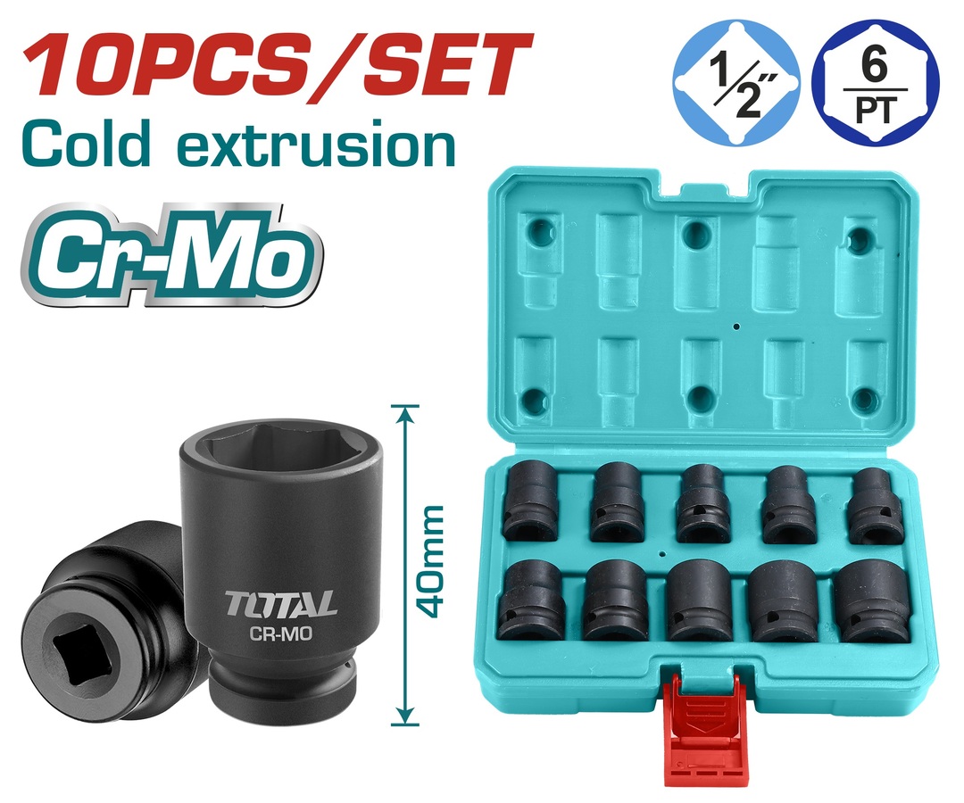 Σετ καρυδάκια για εργαλεία αέρος, της εταιρίας TOTAL μεγέθους 1/2″. Aποτελούν απαραίτητο εργαλείο για κάθε συνεργείο ή γκαράζ σπιτιού καθώς είναι κατάλληλα για επαγγελματική ή ερασιτεχνική χρήση.