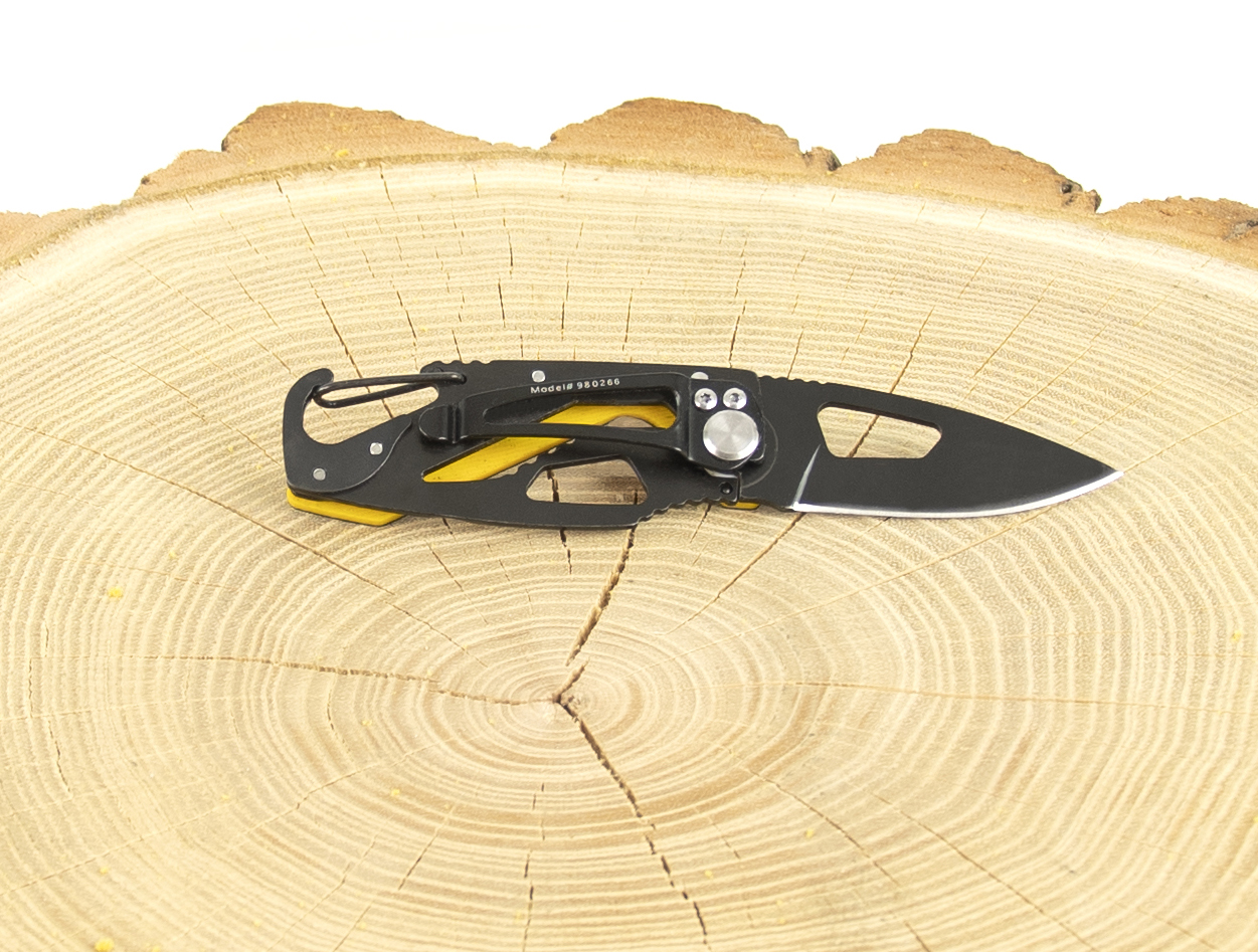 Ο αναδιπλούμενος σουγιάς CAT 980266 με γάντζο είναι ένα πρακτικό εργαλείο με μικρές διαστάσεις και εξαιρετική λειτουργικότητα. Με συνολικό μήκος 13,3 εκατοστά και μήκος λεπίδας 5,4 εκατοστά, είναι ιδανική για καθημερινές εργασίες. Η λαβή από υλικό G10 εξασφαλίζει άνεση και σταθερό κράτημα, ενώ η λεπίδα από ανοξείδωτο ατσάλι 3Cr13MoV είναι ανθεκτική και αξιόπιστη. Επιπλέον, διαθέτει καραμπίνερ και κλιπ τσέπης για εύκολη μεταφορά και πρόσβαση.