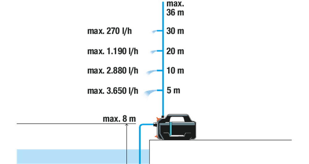 - Μέγιστη ικανότητα άντλησης: 4100 l/h
