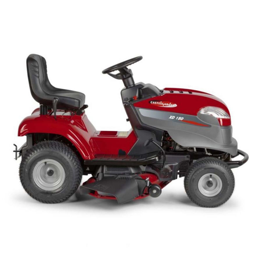 Το Χλοοκοπτικό Τρακτέρ Πλευρικής Εκτόξευσης Castel Garden Με Κινητήρα LONCIN 352cc XD 150 είναι κατασκευασμένο για την κοπή μεγάλων ποσοτήτων από ψηλό ή άγριο χόρτο και την εκφόρτωσή τους από τα πλάγια. Αυτός ο ισχυρός ελκυστήρας γκαζόν τροφοδοτείται από έναν μονοκύλινδρο κινητήρα LONCIN. Το κατάστρωμα κοπής των 98 cm είναι εξοπλισμένο με δύο λεπίδες, που ο χειριστής μπορεί να ενεργοποιήσει μέσω ενός κουμπιού. Το ύψος κοπής μπορεί να ρυθμιστεί σε 7 διαφορετικές ρυθμίσεις, που κυμαίνονται από 25 έως 80 mm για την καλύτερη προσαρμογή της κατάστασης του χόρτου. Το εργονομικό κάθισμα επιτρέπει πιο άνετη εργασία, ενώ τα φαρδιά ελαστκά με το ευρύ προφίλ εξασφαλίζουν ότι η ισχύς μειώνεται απαλά χωρίς να προκαλείται ζημιά στον χλοοτάπητα.