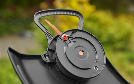 - Η κεφαλή μπορεί να ρυθμιστεί στη γωνία της για θέση εργασίας 0, 10 ή 60 μοίρες. Ακόμα και σε δύσκολα προσβάσιμα μέρη, όπως κάτω από έναν πάγκο κήπου, ένα τραπέζι ή κάτω από ένα τραμπολίνο, με αυτόν τον τρόπο μπορείτε να το επιτύχετε εύκολα.