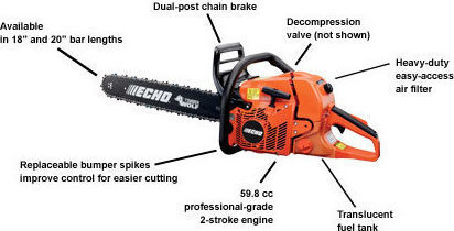 Το αλυσοπρίονο της Echo CS-590 λειτουργεί με βενζινοκινητήρα 3.89 ίππων και κυβισμό 59.8cc. Μπορείτε να κινηθείτε ελεύθερα καθώς δεν εξαρτάται από καλώδια και πρίζες. Με βάρος 6 κιλά και μήκος λάμας 50cm, είναι ιδανικό για κοπή ξύλων, καυσόξυλων και μεγάλων δέντρων.
