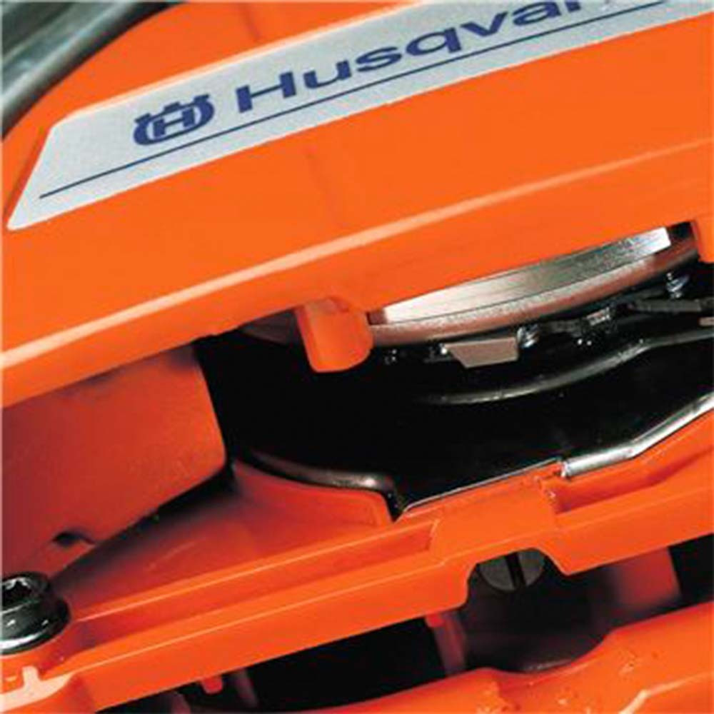 Στιβαρός στροφαλοθάλαμος με μεγάλη αντοχή στις υψηλές στροφές και τη σκληρή επαγγελματική χρήση, που εξασφαλίζει μεγάλη διάρκεια ζωής του μηχανήματος - Πλευρικός εντατήρας αλυσίδας
