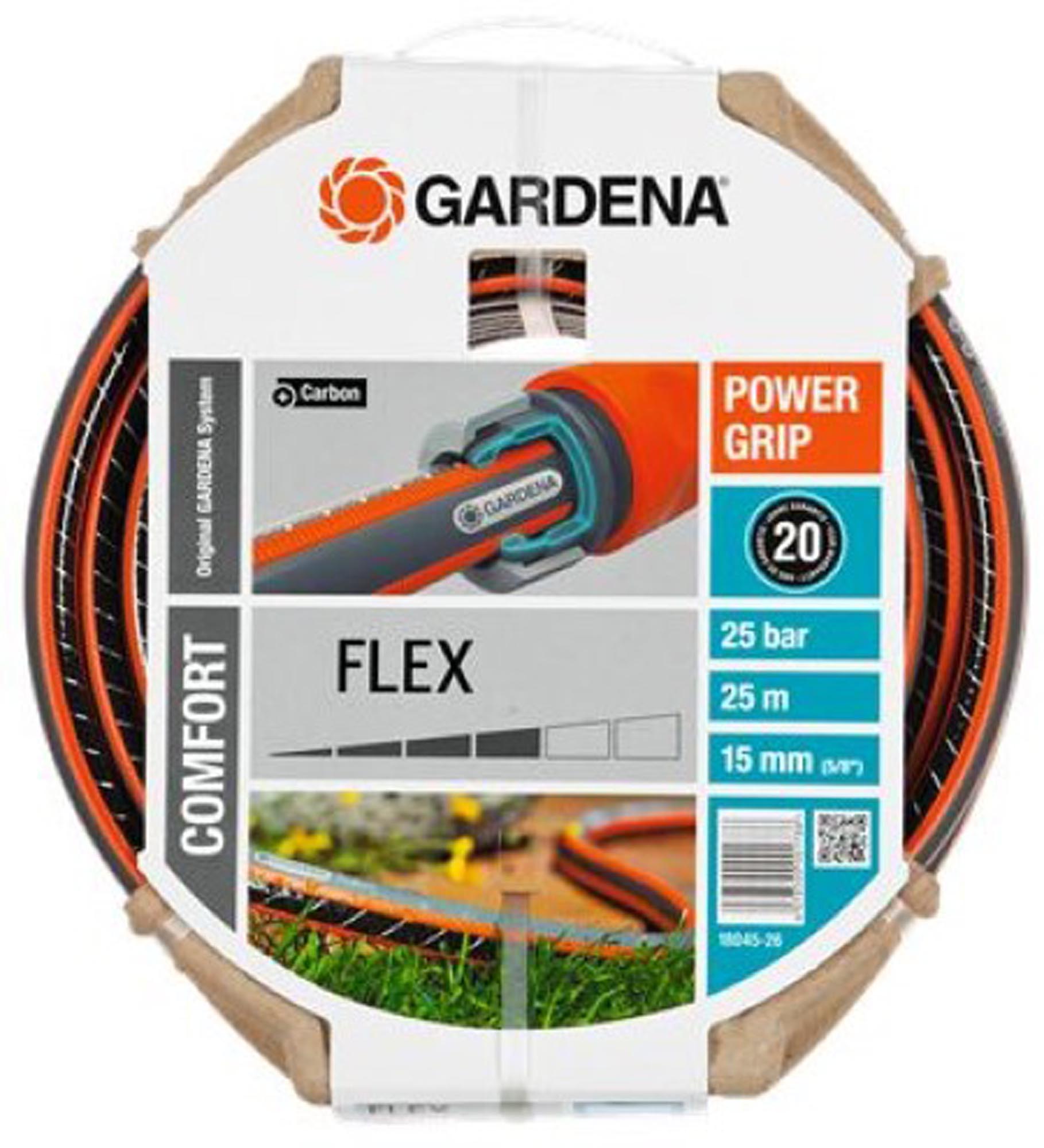 Το Λάστιχο Flex Comfort της Gardena, με την τεχνολογία Power Grip, εγγυάται την τέλεια σύνδεση μεταξύ λάστιχου και ταχυσυνδέσμου. Χάρη στη νέα τεχνολογία λάστιχο και ταχυδύνδεσμος αλληλοσυνδέονται όπως οι οδοντωτοί τροχοί. Το Power Grip καθιστά δυνατό αυτό που πάντα επιθυμούσαν οι ιδιοκτήτες κήπων, την αξιόπιστη σύνδεση με τέλεια δύναμη συγκράτησης. Ένα θετικό στοιχείο αυτής της τεχνολογίας είναι ότι το λάστιχο διπλώνεται πιο εύκολα και σύρεται καλά. Χάρη στην ειδική πλέξη με δύο σπείρες που απλώνονται σε αντίθετες κατευθύνσεις, το εύκαμπτο λάστιχο είναι ανθεκτικό στην πίεση και διατηρεί το σχήμα του, ενώ ταυτόχρονα είναι και ευέλικτο και εύκολο στο χειρισμό. Δεν μπλέκεται σε κόμπους και δεν τσακίζει. Αυτές είναι οι καλύτερες προϋποθέσεις για μια άνετη και ευέλικτη χρήση στον κήπο σας. Εάν απαιτείται, μπορεί να συμπληρωθεί με τα εξαρτήματα και τις συσκευές σύνδεσης του Original Gardena System. Είναι απαλλαγμένο από επιβλαβείς πλαστικοποιητές (φθαλικές ενώσεις) και βαρέα μέταλλα και φυσικά ανθεκτικό στην υπεριώδη ακτινοβολία. Τα χοντρά τοιχώματα το καθιστούν ιδιαίτερα στιβαρό και ανθεκτικό.