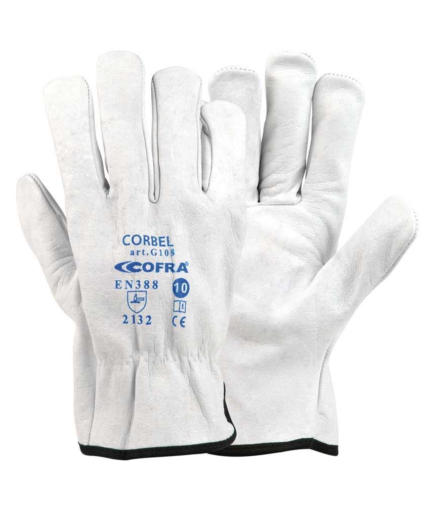 Γάντια εργασίας υψηλής ποιότητας από βουβαλίσιο δέρμα Cofra Corbel. Υψηλής ποιότητας και με μεγάλη αντοχή. Χωρίς ραφές στην παλάμη, γεγονός που προσδίδει άνεση κατά τη χρήση και αποτρέπει τη δημιουργία φουσκαλών. Κατάλληλα για αγροτικές εργασίες, οικοδομικές εργασίες, τη βιομηχανία κλπ.