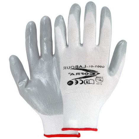 Γάντια νιτριλίου Cofra Labour με το κατά δύναμην απαλή παλάμη από νιτρίλιο για πρόσθετη προστασία και πρόσφυση. Είναι σχεδιασμένα με γνώμονα τη μέγιστη ευελιξία και κατάλληλα για ένα ευρύ φάσμα εργασιών όπως η γεωργία, οι κατασκευές, η κηπουρική, τα logistics κλπ.