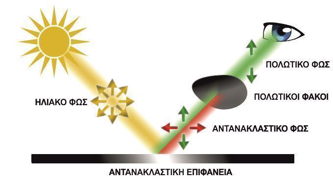 Η οπτική ακτινοβολία, το φώς δηλαδή, αποτελείται από κύματα που ταλαντώνονται σε όλες τις κατευθύνσεις του τρισδιάστατου χώρου, δηλαδή κάθετα, οριζόντια και κατά μήκος όλων των γωνίων μεταξύ αυτών των διαστάσεων. Όταν αυτό το φως συναντά μια ανακλαστική επιφάνεια (νερό, πάγο, χιόνι, άμμο, δρόμο) υποβάλλεται σε μια διαδικασία που ονομάζεται πόλωση, δηλαδή, αρχίζει να κινείται σε ένα δισδιάστατο φάσμα (κάθετα και οριζόντια). Το κάθετο φως φέρνει πολλές χρήσιμες πληροφορίες για το ανθρώπινο μάτι, επιτρέποντας έγχρωμη όραση και την αντίληψη των αντιθέσεων. Το οριζόντιο φως (πολωμένο φως) αντίθετα, δημιουργεί οπτικό “θόρυβο”, διαταράσσοντας την όραση και τη δημιουργία της λεγόμενης αντήχησης. Οι Πολωτικοί φακοί στοχεύουν στην εξάλειψη ακριβώς αυτών των ενοχλητικών αντανακλάσεων που προκαλούν έντονο φως. Είναι στην πραγματικότητα φακοί με μια “κάθετη δομή” που απορροφούν τις οριζόντιες ακτίνες φωτός που είναι υπεύθυνες για την αντηλιά, αφήνοντας μόνο τις κάθετες ακτίνες να περνούν, οι οποίες είναι χρήσιμες και πλούσιες σε πληροφορίες.