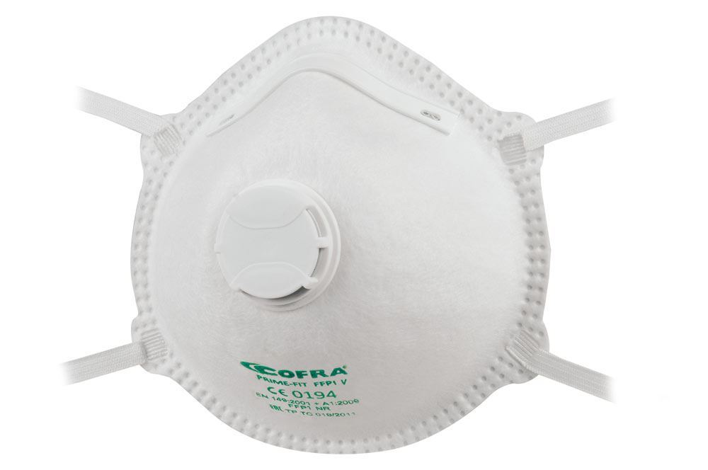 Κυπελλοειδής φιλτρομάσκα Cofra Prime-Fit FFP1V με βαλβίδα εκπνοής. Ο εργονομικός σχεδιασμός εξασφαλίζει άριστη προσκόλληση στο πρόσωπο και άνεση σε πολύωρη χρήση. Χωρίς εκτεθειμένα μεταλλικά στοιχεία. Τα υλικά κατασκευής είναι μακράς διαρκείας και κατάλληλα για καθημερινή χρήση.