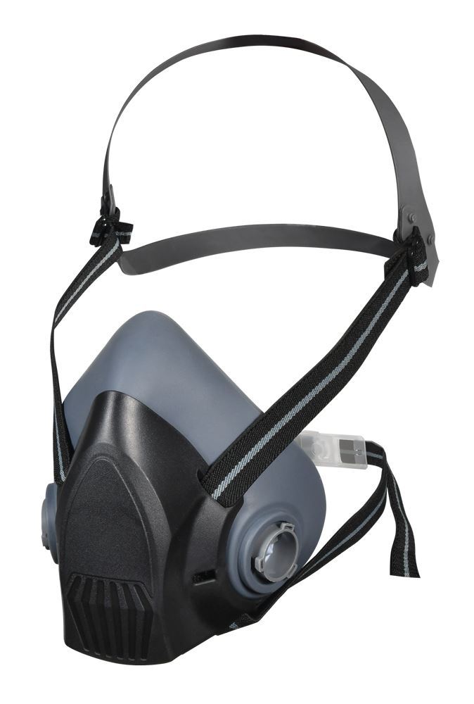 Μάσκα ημίσεως προσώπου Cofra 710 με βύσματα μπαγιονέτ. Υποαλλεργική, κατασκευασμένη από μαλακό και ελαφρύ θερμοπλαστικό ελαστομερές (TPE) που εξασφαλίζει άνεση και απαλότητα στη ρινική περιοχή. Το σχήμα εφαρμόζει σε κάθε τύπο προσώπου με εξαιρετική πρόσφυση. Είναι εξοπλισμένη με μια κεντρική βαλβίδα εκπνοής που απομακρύνει εύκολα τη θερμότητα και την υγρασία, αυξάνοντας την άνεση κατά τη χρήση. Ο εκπνεόμενος αέρας, χάρη στο εξωτερικό σκληρό κέλυφος, κατευθύνεται προς τα κάτω για να μην παρεμποδίζει την πιθανή συνδυασμένη χρήση με άλλα ΜΑΠ. Η ζώνη έχει ένα εύκαμπτο κεφαλάρι συνδεδεμένο με ρυθμιζόμενα ελαστικά και ένα κλιπ στερέωσης εύκολο στη χρήση. Οι σύνδεσμοι μπαγιονέτ επιτρέπουν στη μάσκα να προσκολλάται στα φίλτρα με απόλυτη ασφάλεια, καθώς κατά τη φάση της συναρμολόγησης μπορεί να ακουστεί ένα κλικ μετά τη σωστή σύνδεση. Είναι δυνατό να αποσυναρμολογήσετε πλήρως τη μάσκα και να πλύνετε τα εξαρτήματά της εάν είναι απαραίτητο.