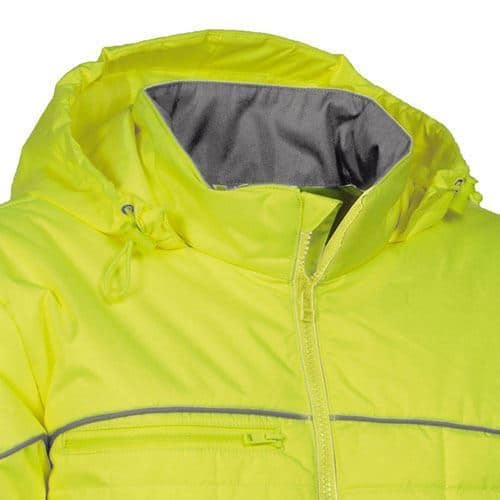 Ανακλαστικό μπουφάν εργασίας με εργονομικό σχεδιασμό, σχεδιασμένο για εργαζόμενους που εκτίθενται σε κίνδυνο από οχήματα (οδούς ή εργοτάξια), κατά τη διάρκεια της εργασίας σε αντίξοες καιρικές συνθήκες. Αυτό το προϊόν εξασφαλίζει άνεση χάρη στις υψηλές επιδόσεις θερμομόνωσης και χάρη στο εξωτερικό ύφασμα fluo που αναπνέει. Οι θερμικές ιδιότητες παρέχονται από την ογκώδη και συμπαγή επένδυση. Πιστοποίηση EN ISO 20471 / EN 14058.