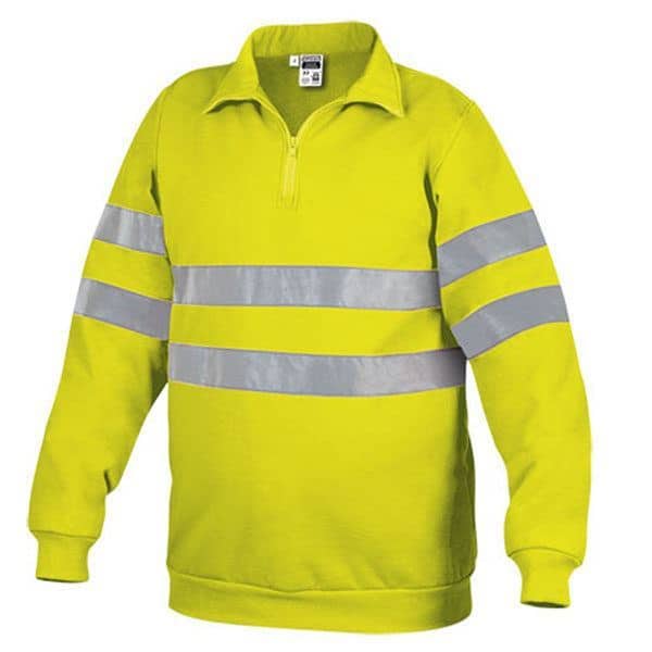 Φούτερ κίτρινη υψηλής ευκρίνειας με ανακλαστικά ένθετα. Ζεστή με πλέξη βάρους 300 g/m² και εσωτερική στρώση fleece. Eίναι κατάλληλη για για τον χειμώνα και την εργασία σε συνθήκες χαμηλής ορατότητας, αλλά και την καθημερινότητα, το ποδήλατο και το περπάτημα κατά τη νύχτα.