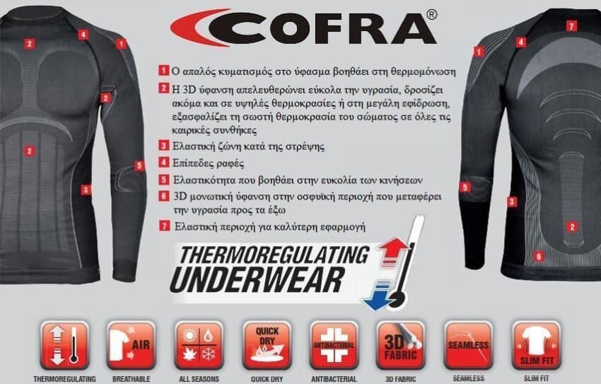 Η ισοθερμική Μπλούζα Cofra Bryne, εξασφαλίζει εξαιρετική απορρόφηση και απελευθέρωση της υγρασίας, κρατώντας το δέρμα στεγνό και το σώμα στη σωστή θερμοκρασία, ενώ οι αντιβακτηριδιακές ιδιότητες αποτρέπουν την ανάπτυξη βακτηρίων και μυκήτων που προκαλούν δυσάρεστες οσμές.