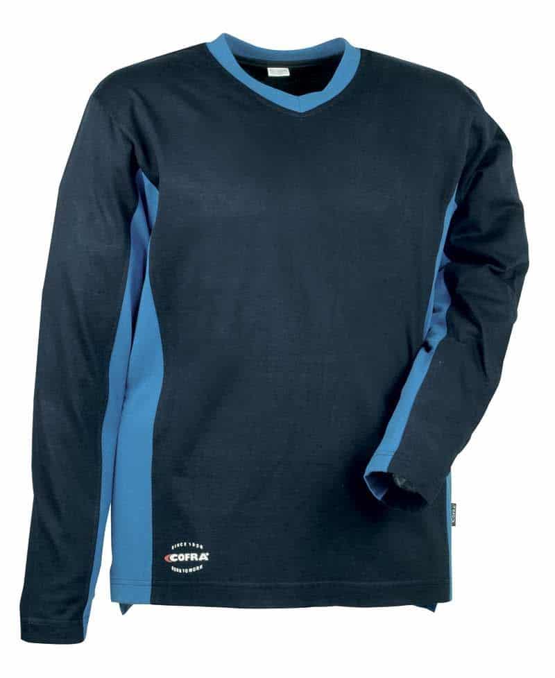 Cofra Madeira navy/royal. Μπλούζα βαμβακερή βάρους 200 g/m² από 100% βαμβάκι ζέρσεϊ. Σχεδίαση που παρέχει άνεση σε οποιαδήποτε κατάσταση εργασίας με τη χρήση καινοτόμων υφασμάτων που δίνουν μεγάλη λειτουργικότητα. Χρώμα μαύρο/ανθρακί.