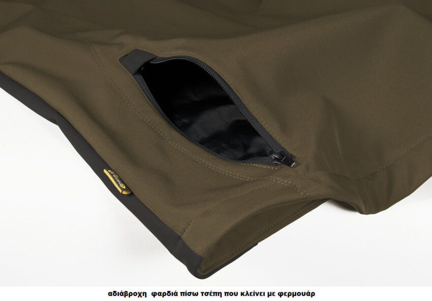 Με μοντέρνα σχεδίαση, διαθέτει 2 κάτω τσέπες με φερμουάρ, 2 φαρδιές τσέπες στο στήθος με φερμουάρ, ρυθμιζόμενη και αποσπώμενη κουκούλα, ρυθμιζόμενες μανσέτες με velcro, εργονομική σχεδίαση στα χέρια, διελαστικό ύφασμα με προστατευτική μεμβράνη, πτερύγιο που προστατεύει το πηγούνι, μπροστινό άνοιγμα με φερμουάρ, τσέπη ραδιοφώνου στο στήθος, αδιάβροχη φαρδιά πίσω τσέπη που κλείνει με φερμουάρ.