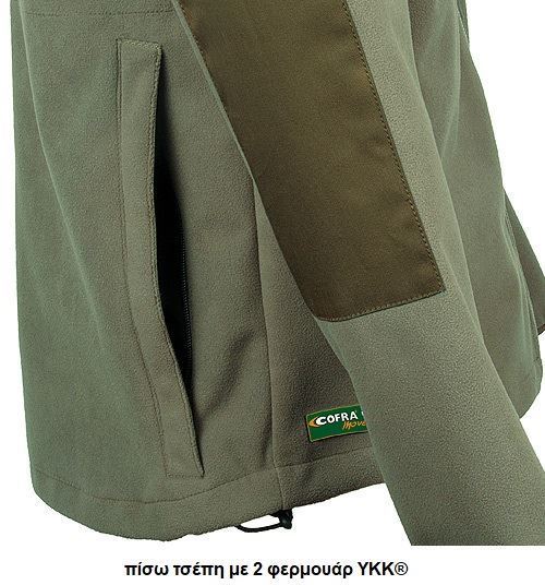 Υδατοαπωθητική ζακέτα fleece Cofra Kladow κατάλληλη για το κυνήγι, την εργασία και τις εξωτερικές δραστηριότητες. Αντιανεμική χάρη στην COFRATEX μεμβράνη προστασίας. Με βάρος 340 g/m² εγγυάται την πλήρη προστασία σας στις δύσκολες καιρικές συνθήκες σε συνδυασμό με ευκολία κινήσεων.