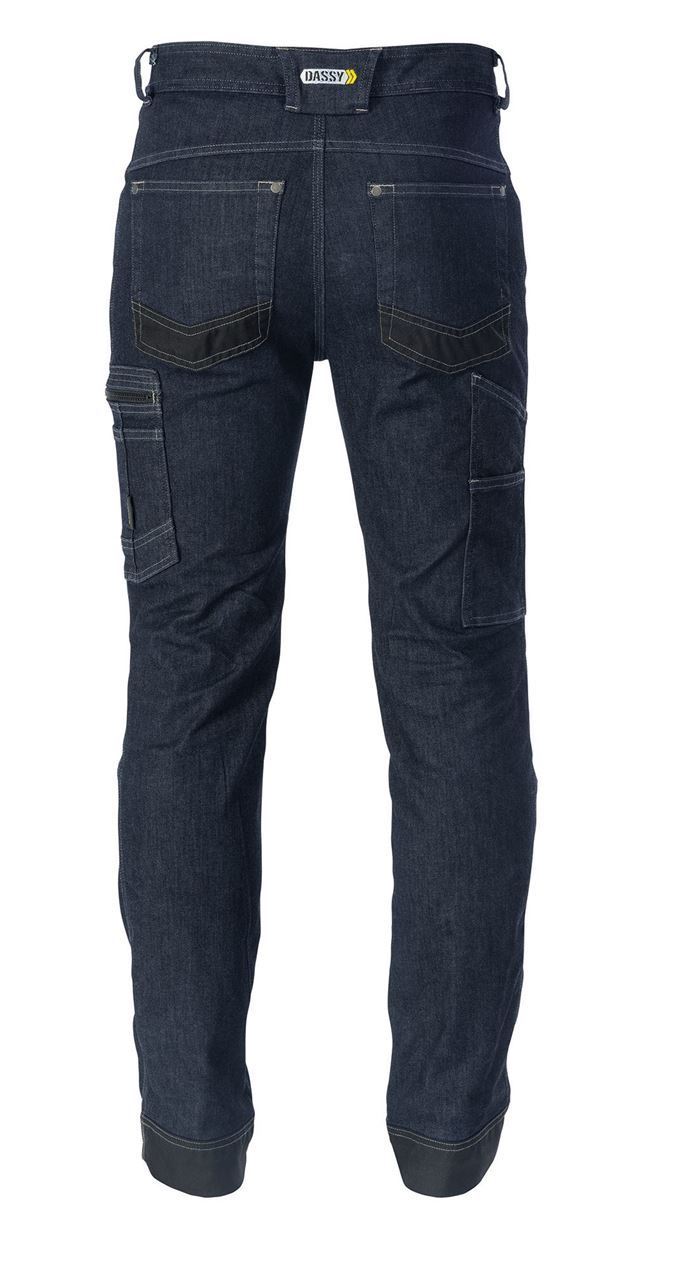 Το ελαστικό Jean εργασίας DASSY® Osaka προσφέρει όλα τα πλεονεκτήματα των επαγγελματικών ενδυμάτων εργασίας, σε συνδυασμό με ξεχωριστό σχεδιασμό και εμφάνιση. Οι πρακτικές και καλά τοποθετημένες τσέπες, σάς παρέχουν όλο τον χώρο που χρειάζεστε για να αποθηκεύσετε τα πιο σημαντικά εργαλεία. Η προσαρμοσμένη slim εφαρμογή και η εντυπωσιακά καθαρή σχεδίαση, συνδυάζουν ωραία και πρωτότυπη που πλησιάζει το casual look. Πλήρης ελευθερία κινήσεων χάρη στο πλήρως Stretch ύφασμα (4-way Stretch) και μεγάλη αντοχή χάρη στην άριστη ποιότητα των υλικών.
