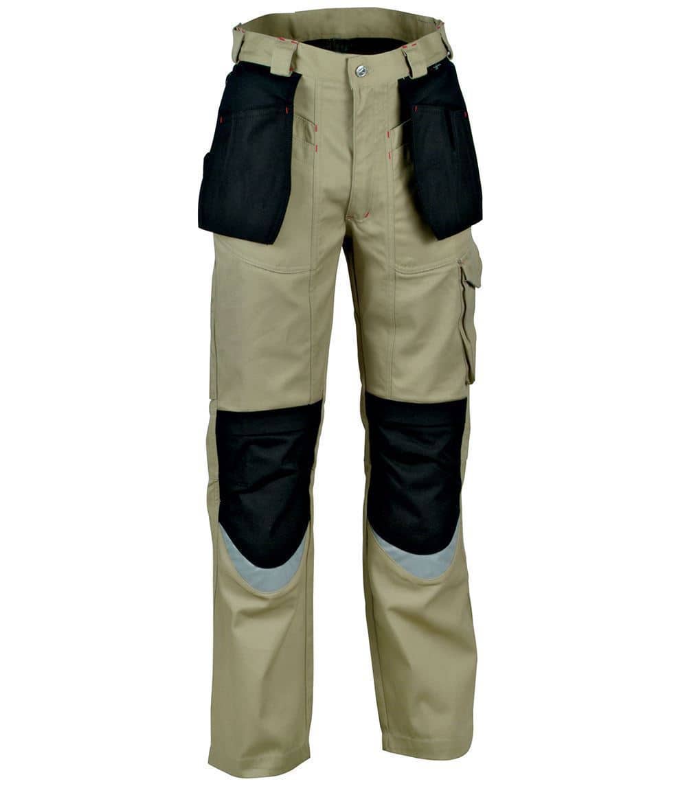 Παντελόνι εργασίας με εργονομικό σχεδιασμό στο γόνατο και στο πόδι, Cofra Bricklayer khaki/black, βάρους 290 g/m². Κατάλληλο για το χειμώνα και χαμηλές θερμοκρασίες, από 60% βαμβάκι και 40% πολυεστέρα, με Πιστοποίηση EN ISO 13688:2013.