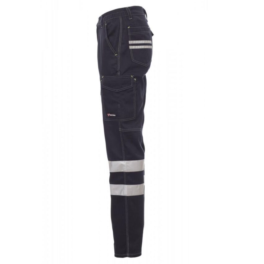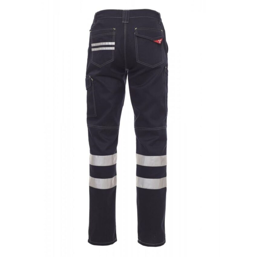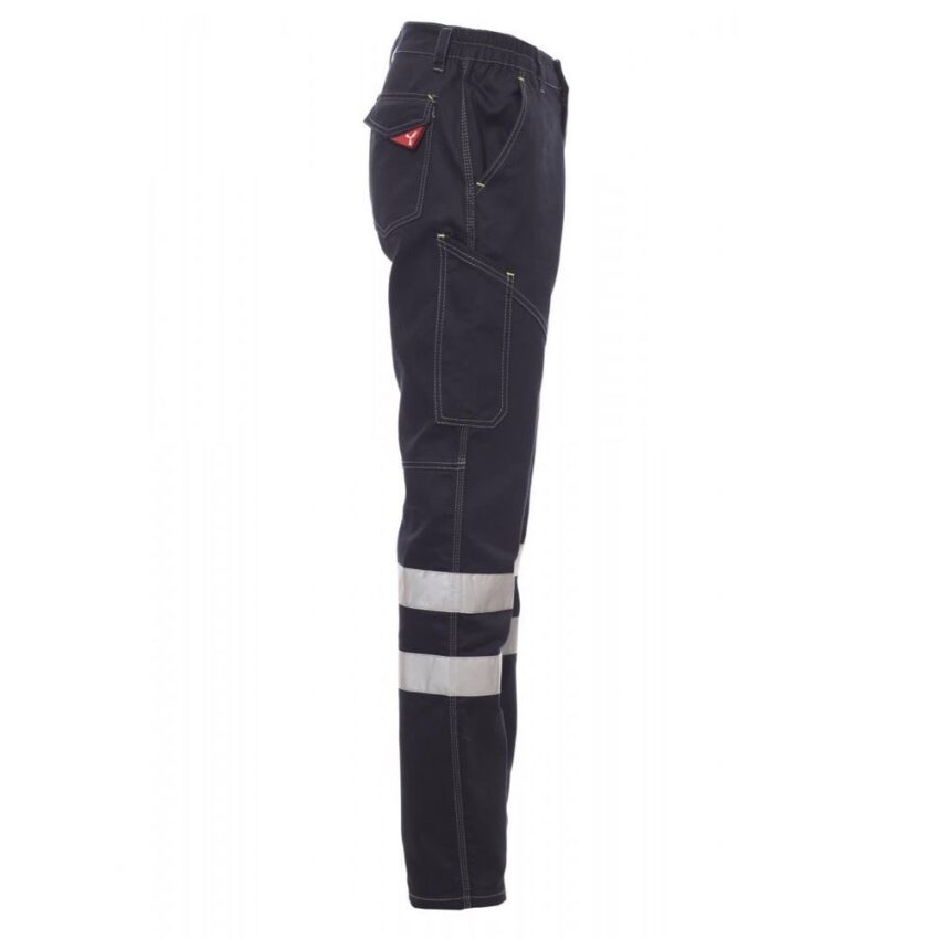 Παντελόνι unisex για όλες τις εποχές με ανακλαστικές λωρίδες στα γόνατα και σε μία πίσω τσέπη. 100% βαμβακερό και με βάρος πλέξης 260g/m², είναι κατάλληλο για κατασκευαστικές εργασίες, logistics, εργαζομένους στο ΕΚΑΒ κλπ.