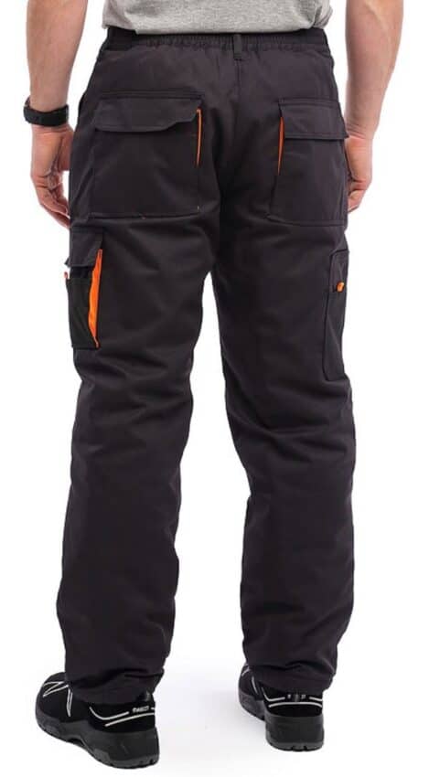 Παντελόνι εργασίας από την σειρά KING της SARA WORKWEAR βάρους 245 g/m². Χρώμα μαύρο/πορτοκαλί.