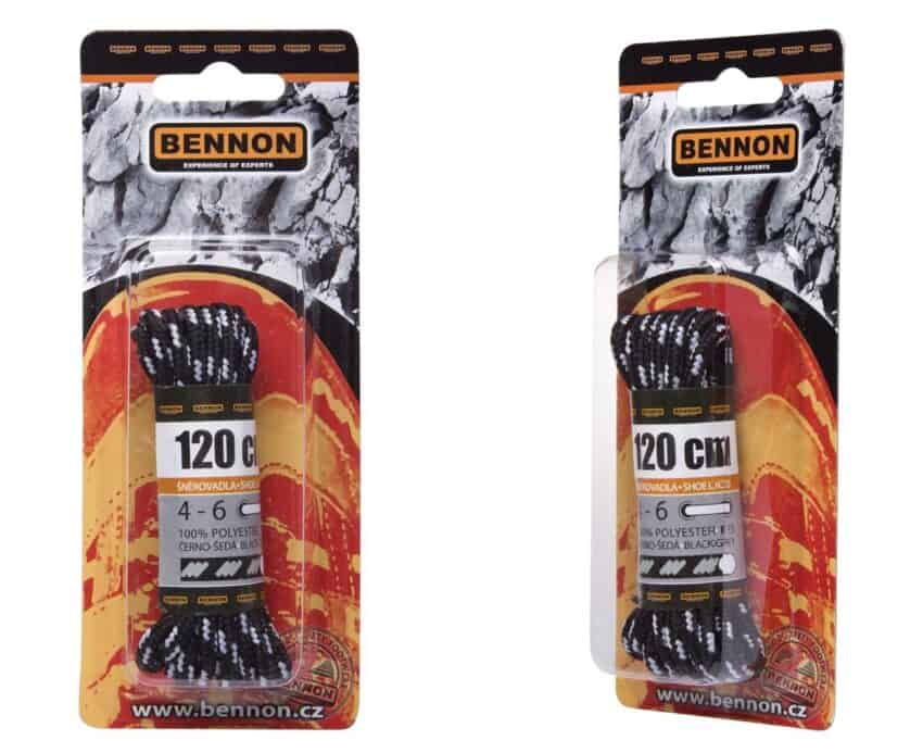 Bennon black-grey 120εκ..Κορδόνια παπουτσιών στρόγγυλα της Bennon σε χρώμα μαύρο-γκρι και μήκους 120εκ. 100% πολυεστερικά, κατάλληλα για χαμηλά υποδήματα και ημιμποτάκια, καλύπτουν 4-6 θηλύκια.
