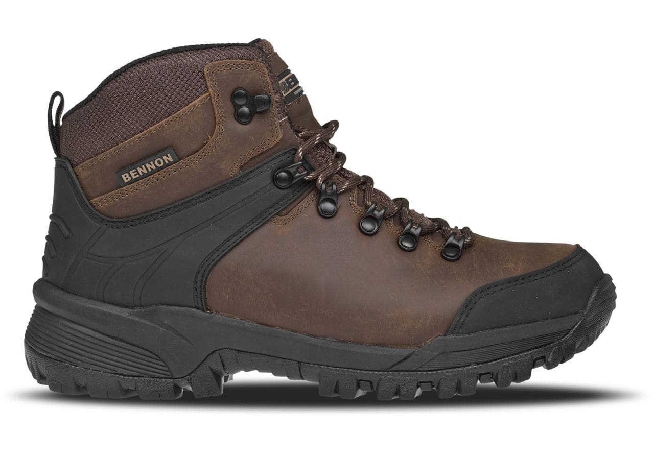 Ορειβατικά μποτάκια Bennon Castor High, από ανθεκτικό γνήσιο δέρμα Crazy horse. Άνετα, με προστατευτικό ένθεμα στο μπροστινό μέρος του παπουτσιού που αποτρέπει τη φθορά και σόλα off-road η οποία σε συνδυασμό με το σταθεροποιητικό αστραγάλου, εξασφαλίζουν σταθερότητα ακόμα και στα πιο δύσκολα και ανώμαλα εδάφη. Κατάλληλα για χρήση όλο το χρόνο τόσο στο βουνό, αλλά και για την καθημερινότητα.