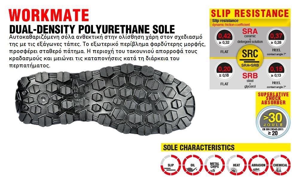 Κατασκευασμένο σύμφωνα με το πρότυπο ασφαλείας CE EN ISO 20345:2011.