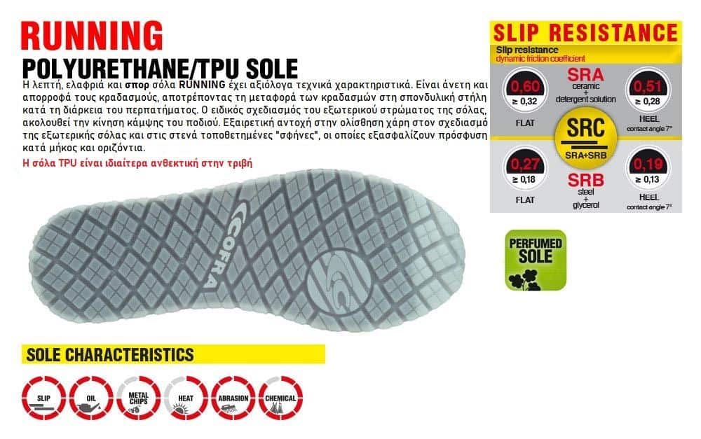 Η εξωτερική του σόλα από PU/TPU με επιδόσεις Εξαιρετικής Αντιολίσθησης, συνθέτουν ένα πολύ ελαφρύ, εύκαμπτο και άνετο σύνολο για τον χρήστη είτε είναι όλη την ημέρα στην εργασία του, είτε για τον ελεύθερο χρόνο.