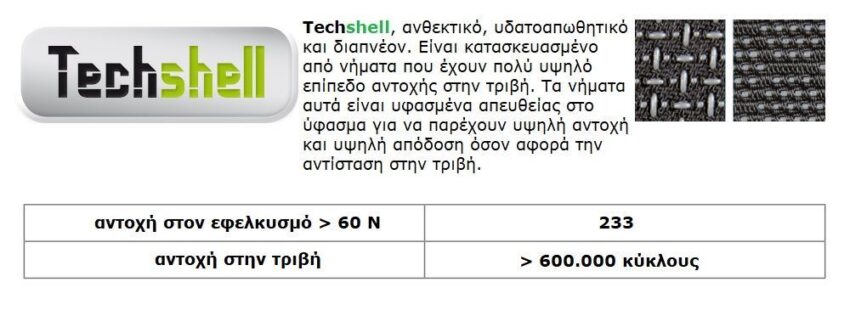 ΚΟΡΜΟΣ: TECHSHELL, καινοτόμο ύφασμα, ανθεκτικό στην τριβή, υδατοαπωθητικό και διαπνέον.