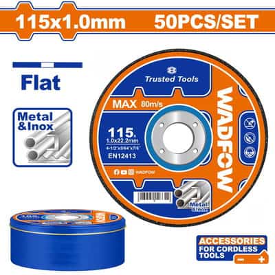 Wadfow WAC3L45 Δίσκος Κοπής Inox/Μετάλλου Ίσιος 115 Χ 1mm 50 Τεμάχια Σε Μεταλλικό Κουτάκι