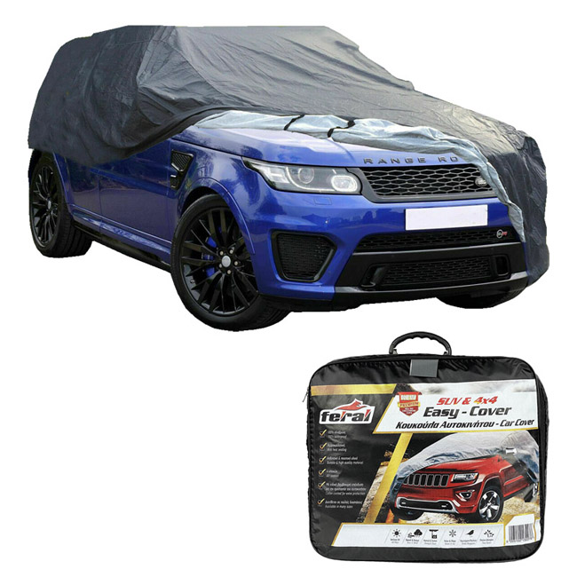 Οι κουκούλες Feral κατασκευάζονται με υλικά υψηλής ποιότητας. Εξασφαλίζουν μέγιστη προστασία από το φως του ήλιου, τη βροχή, το χιόνι, τον παγετό, τη σκόνη, την άμμο, τα πουλιά κ.α. Είναι ραφτές και 100% αδιάβροχες, με ειδική βαμβακερή επένδυση για την προστασία της επιφάνειας του αυτοκινήτου, εμποδίζοντας τη δημιουργία υγρασίας μεταξύ τους και του αυτοκινήτου. Ιδανικές για όλες τις εποχές. Αποτελούν μία από τις καλύτερες επιλογές για την κάλυψη του αυτοκινήτου σας.