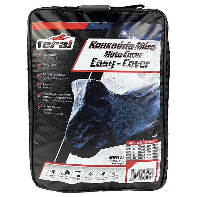 Οι κουκούλες Feral κατασκευάζονται με υλικά υψηλής ποιότητας. Εξασφαλίζουν μέγιστη προστασία από το φως του ήλιου, τη βροχή, το χιόνι, τον παγετό, τη σκόνη, την άμμο, τα πουλιά κ.α. Είναι ραφτές και 100% αδιάβροχες, με ειδική βαμβακερή επένδυση για την προστασία της επιφάνειας της μηχανής, εμποδίζοντας τη δημιουργία υγρασίας μεταξύ τους και της μηχανής. Ιδανικές για όλες τις εποχές. Αποτελούν μία από τις καλύτερες επιλογές για την κάλυψη της μηχανης σας.