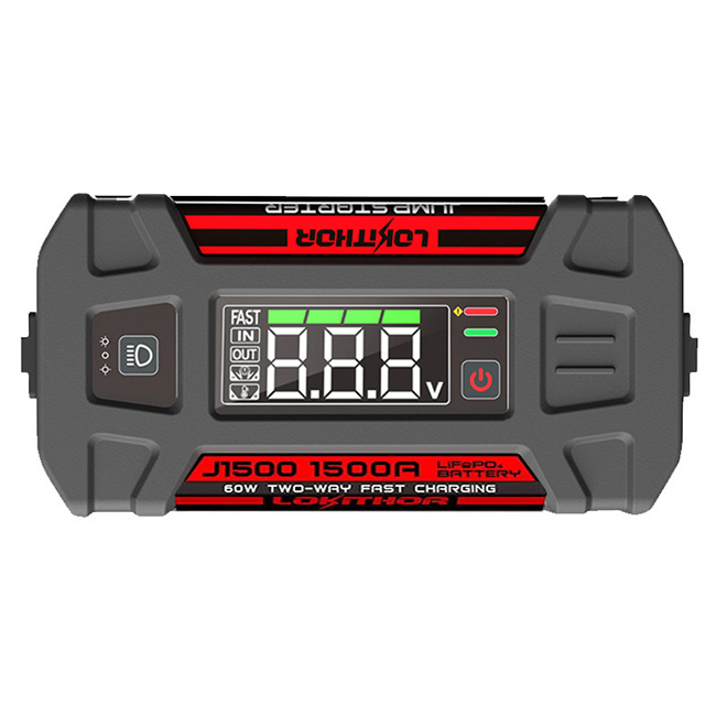 Ο εκκινητής αυτοκινήτου Lokithor J1500 παρέχει ρεύμα εκκίνησης 1500A και εκκινεί έως και 60 φορές μετά από μία πλήρη φόρτιση. Κατάλληλος για οχήματα με κινητήρες βενζίνης και πετρελαίου όπως αυτοκινήτα, μοτοσυκλέτες, σκάφη, RV, Vans, τρακτέρ κ.λπ. Η μπαταρία LiFePO4 είναι και η βασική εγγύηση ασφάλειας του J1500. Η διάρκεια ζωής είναι 50% μεγαλύτερη από τους παραδοσιακούς αναφλεκτήρες και ο αριθμός των χρήσεων είναι περισσότερες από 2000 φορές.