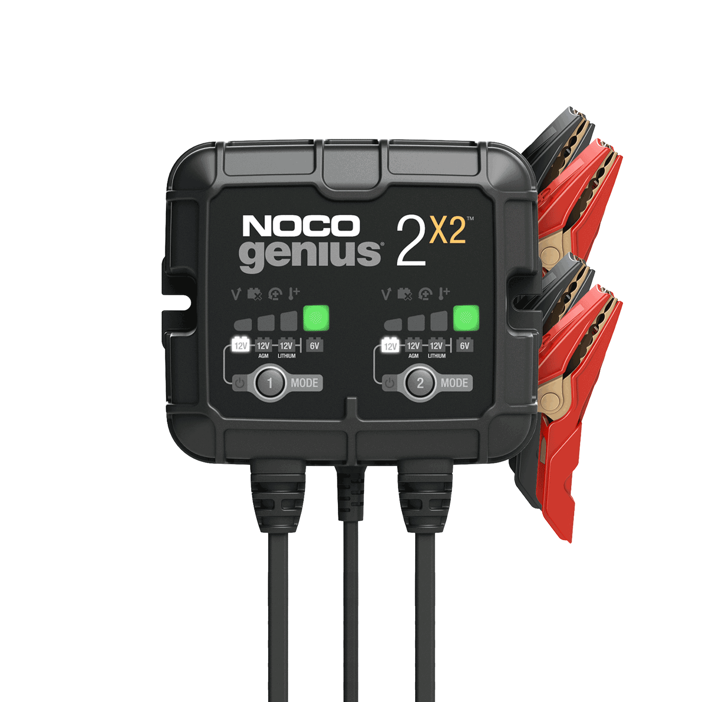 Ο Genius2X2 είναι ένας φορτιστής 6 και 12V κατάλληλος για την συντήρηση την φόρτιση και την αποθείωση των μπαταριών. Έχει ονομαστική ισχύ 4 αμπέρ (2 αμπέρ ανά συστοιχία) για όλους τους τύπους μπαταριών μολύβδου-οξέος και ιόντων λιθίου, συμπεριλαμβανομένων των πλημμυρισμένων, gel και AGM, καθώς και μπαταριών θαλάσσης και μπαταριών βαθιάς ανακύκλωσης.