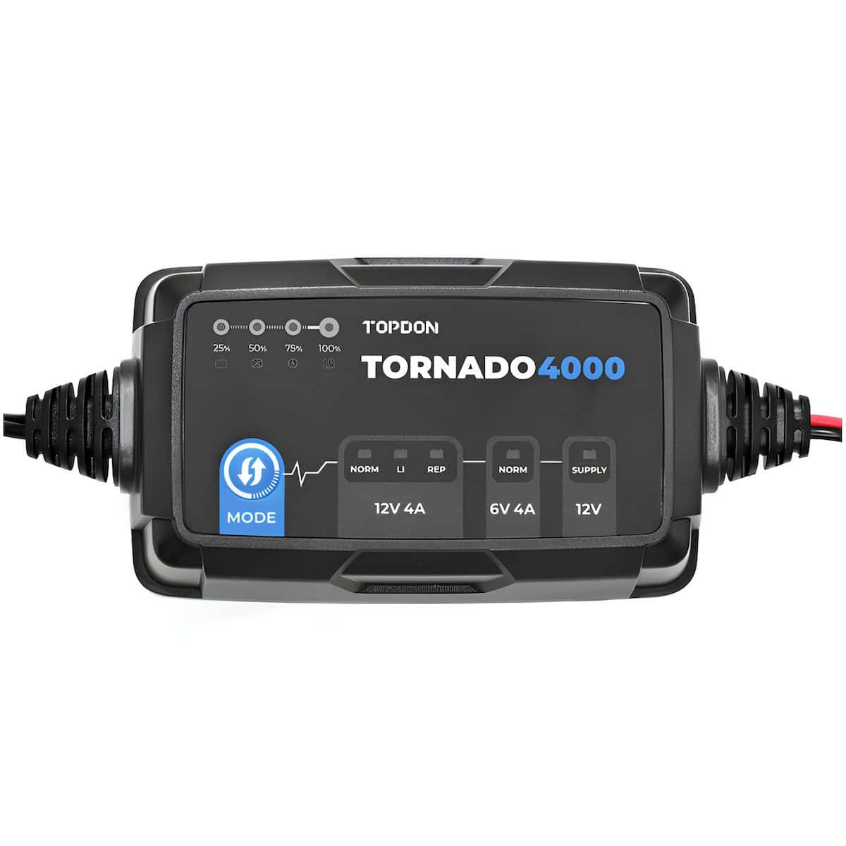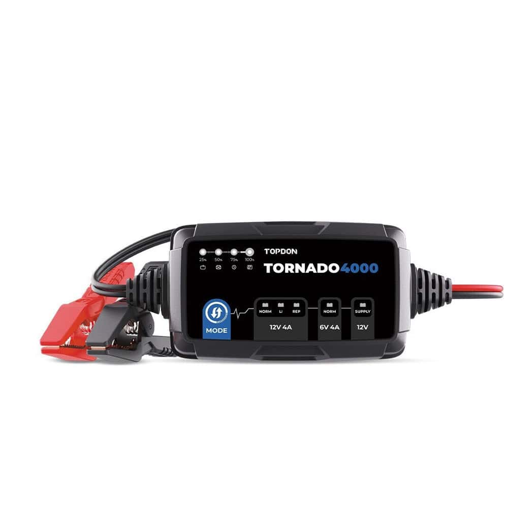 Ο φορτιστής μπαταριών αυτοκινήτου Topdon T4000C της εταιρείας Noco χρησιμοποιείται για τη φόρτιση της μπαταρίας ενός αυτοκινήτου, προκειμένου να διατηρηθεί η επαρκής ενέργεια που απαιτείται για τη λειτουργία των ηλεκτρονικών συστημάτων του οχήματος.