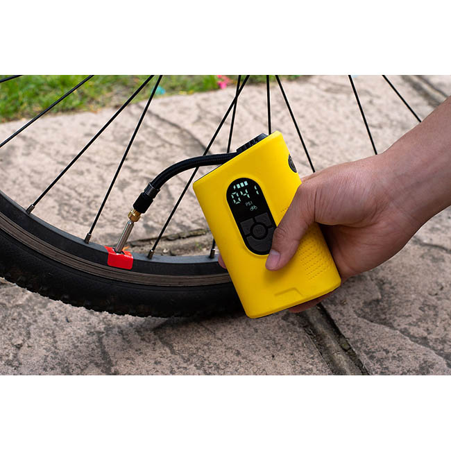 Το Mini Handheld Inflator έχει κομψό σχεδιασμό που χωράει κυριολεκτικά στην παλάμη του χεριού σας. Μια πλήρης φόρτιση θα φουσκώσει έως και 4 τυπικά ελαστικά ποδηλάτου.