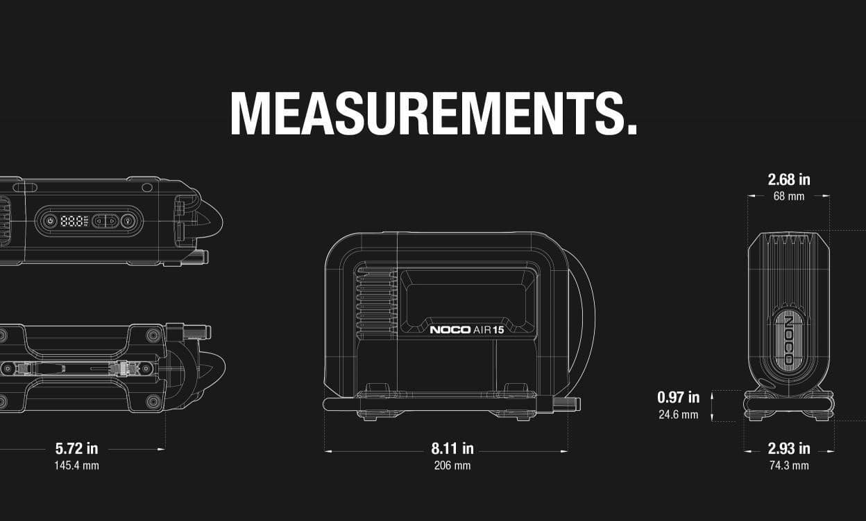 Φορητός αεροσυμπιεστής 12 volt, 15 amp με κινητήρα 200 watt με μέγιστη πίεση 80 PSI. Το AIR15 είναι η επόμενη γενιά φορητών αεροσυμπιεστών, που χρησιμοποιεί προηγμένο σχεδιασμό κινητήρα και ροής αέρα για ελαστικά έως 33 ιντσών. Λειτουργεί περισσότερο, γεμίζει πιο γρήγορα και είναι απείρως καλύτερο.