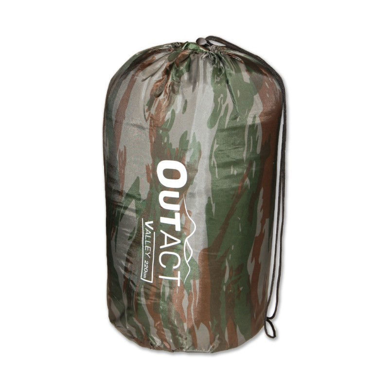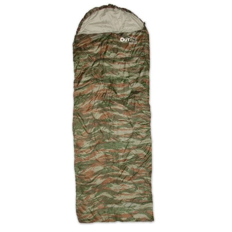 Υπνόσακος Outact Valley Camo 220, σε χρώμα Ελληνικής παραλλαγής. Είναι κατάλληλος για χρήση σε εσωτερικούς χώρους αλλά και σε εξωτερικούς με μέτριες θερμοκρασίες. Κατασκευασμένος από ύφασμα 190Τ Polyester εξωτερικά, με επένδυση Hollow Fiber 220gr/m² και εσωτερικό ύφασμα 190Τ Polyester Pongee.